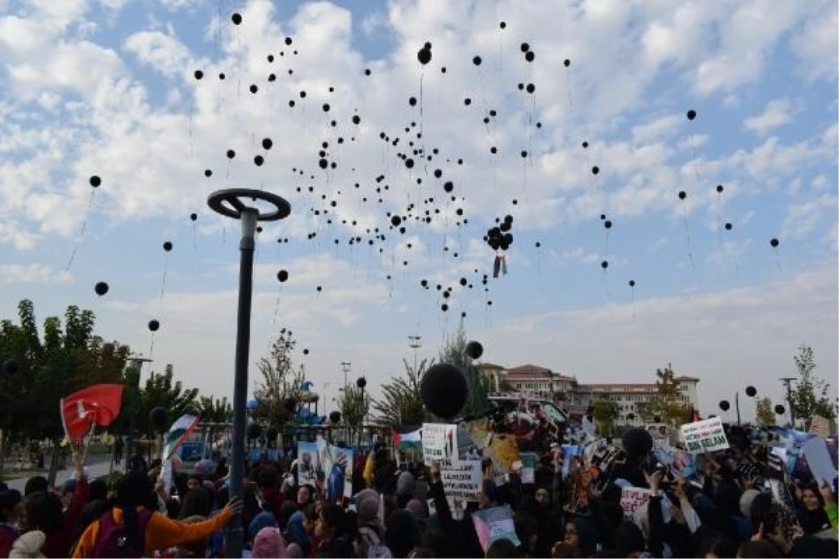 Batman’da İsrail’in taarruzlarını protesto eden çocuklar gökyüzüne siyah balon bıraktı