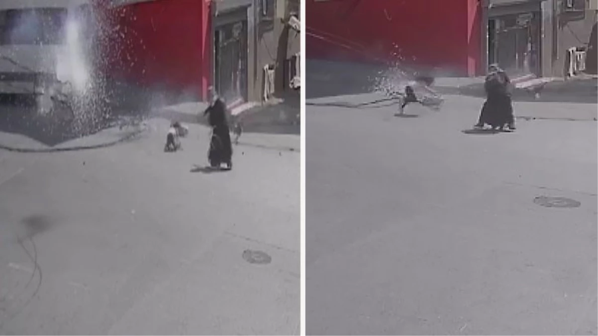 Elektrik direği devrildi! Kıvılcım alan kablolar anne ve çocuklarının üzerine düştü